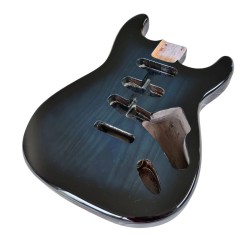 Corps de guitare style Stratocaster, finition Blue Burst avec vernis poly gloss. Routage SSS et bois Frêne. Idéal pour un projet lutherie amateur ou confirmé.