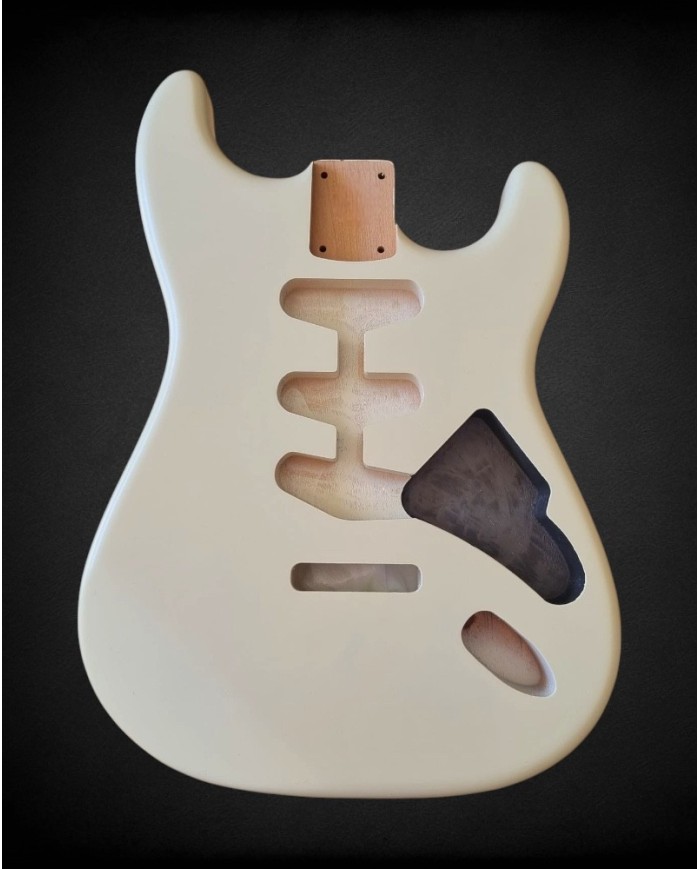 Corps en aulne, routing SSS avec cavité tremolo, cavité manche aux dimensions standard Fender. Prêt à assembler avec votre manche et votre hardware.
