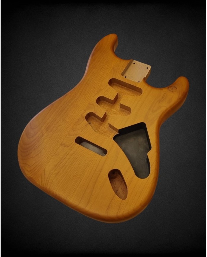 Corps en aulne, routing SSS avec cavité tremolo, cavité manche aux dimensions standard Fender. Prêt à assembler avec votre manche et votre hardware.