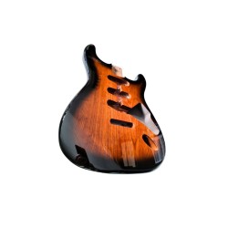 Corps de Stratocaster en aulne 2 pièces avec une magnifique finition Sunburst 3 tons et un verni poly gloss ! Projet custom réussi à 100%.