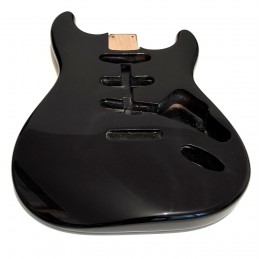 Corps style Stratocaster en frêne 3 pièces Vernis poly gloss. Finition Metallic Black, micros SSS