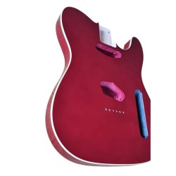 Solid alder, 3-piece, Fiesta Red, Thinline Telecaster-style body with cream double binding and a poly gloss finish. This body is bright, shiny, classy, and in HS version, perfect for a guitarist who wants a big sound and versatility.