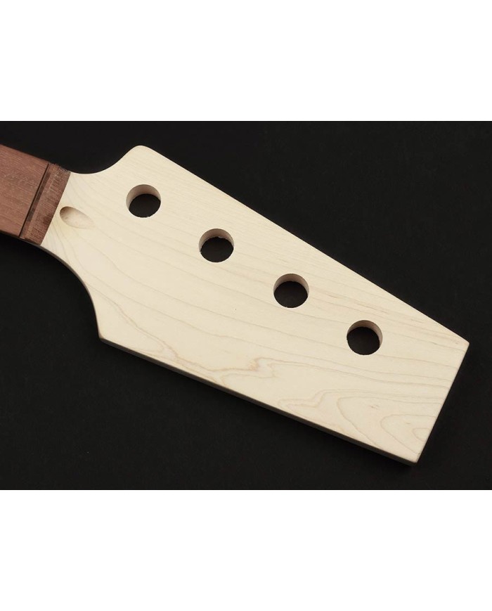 Un Manche économique pour construire votre propre guitare basse. Le manche est en érable canadien avec une touche en pau ferro. Pau ferro est une touche de haute qualité utilisée sur de nombreuses guitares custom shop. Ce manche est doté d'un trussrod à double action installé afin que vous puissiez configurer la guitare pour une jouabilité parfaite. Le rayon de la touche de 9,5" est utilisé dans la plupart des manches de ce type fabriqués aux États-Unis. Il est confortable et permet une action basse et une grande jouabilité. Le manche de ce PN-21 a une largeur au sillet de 42 mm, standard pour les manches de type Precision. Le trou de la tête de la machine a la largeur standard de 18 mm. Les frettes jumbo ont été nivelées et n'ont besoin que d'un couronnement et d'un polissage final. La tete Paddle vous permet de créer votre propre design et de vous démarquer de la foule.