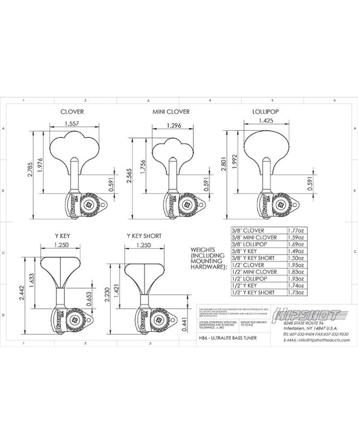 4 x MECANIQUES BASSE HIPSHOT ULTRALIGHT HB6C Axe 3/8"Clef Trèfle (Elephant) CHROME Mécanique HIPSHOT ultra légère (UltraLight > 46g) avec boitier en aluminium type aviation qui offre légèreté et grande durabilité. petite taille pour une installation facile sur tes têtes de basse 4, 5 et 6 cordes. le ratio 20:1 permet un réglage rapide et précis. Axe : 9,5mm (3/8"); perçage requis dans la tête de la guitare: 14mm (9.16") Bouton Trefle (Clover Leaf, egalement appelé oreille d'éléphant) Le modele Orignal USA est réversible : on peut l'utiliser à gauche et à droite en inversant la clé. Il suffit de retirer la roue crantée avec un tournevis cruciforme puis de retirer le bouton et son axe avec une clef Allen et de l'inverser. Livrées par défaut côté gauche set of 4x HIPSHOT ULTRALIGHT HB6C BASS TUNER 3/8" Clover Key Chrome Finish Hipshot">Solid machined aircraft grade aluminum housing gives you high durability in an extremely light package. Small footprint easily installs on 4, 5, and 6 string headstocks. 20:1 gear ratio with a full size gear and worm for super quick and accurate tuning. Tuning keys are easily reversible for conversion to bass (left) or treble (right) side. Clover Leaf key. 3/8" string post fits 9/16" headstock holes.Généralement expédié sous 1 à 3 jours : ( pour disponibilités) ;
