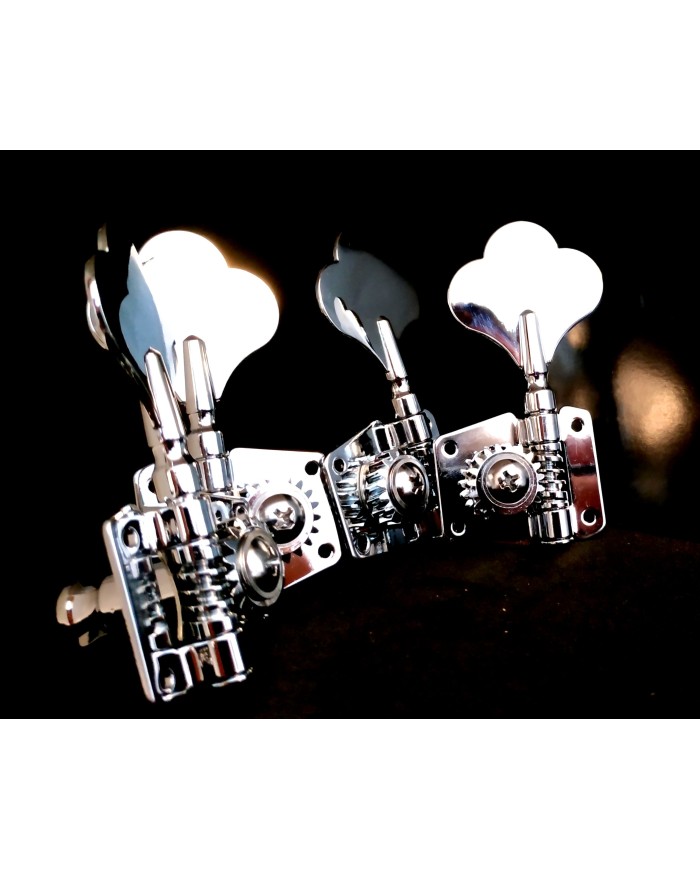 4 Mécaniques de basse à engrenage Chrome 2+2 réversibles, axe 14mm