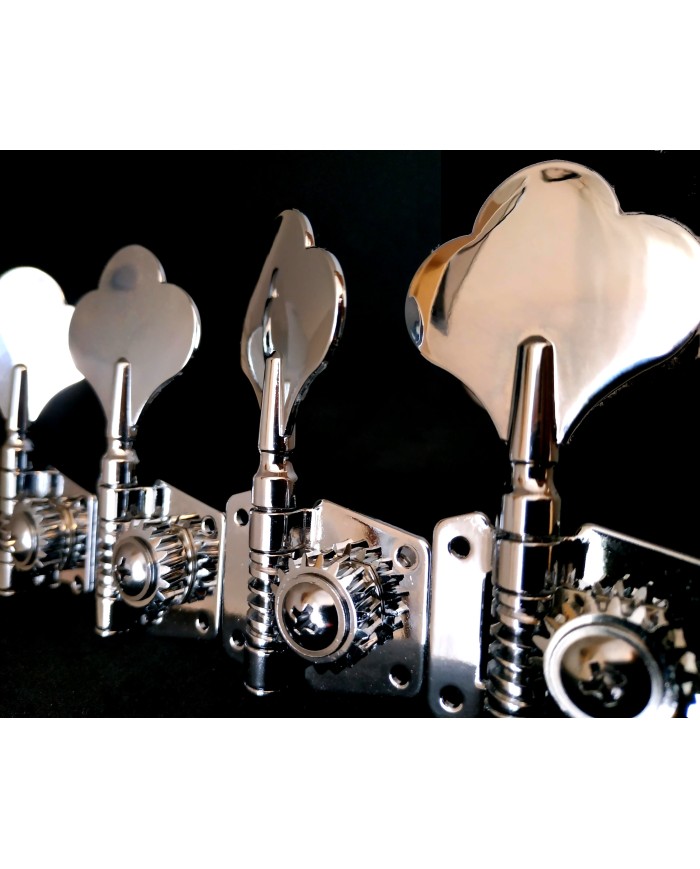 4 Mécaniques de basse à engrenage Chrome 4L réversibles, axe 14mm