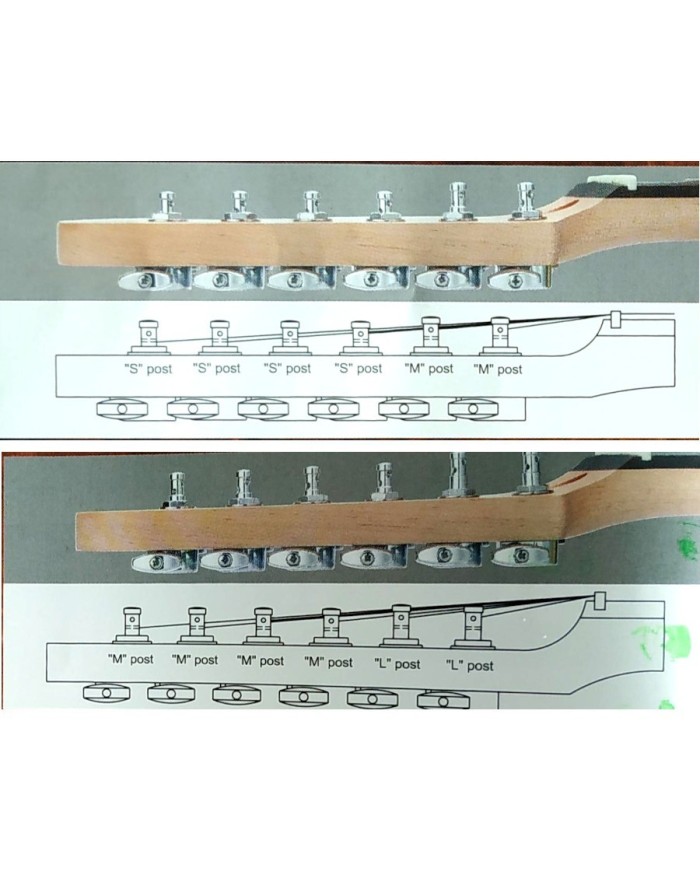 Diamètre des trous dans la tête de guitare (peghead) 10mm / 6mm.