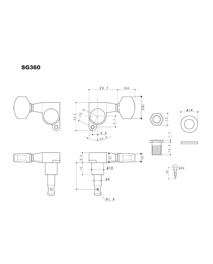 6 Mecaniques en Ligne noires Gotoh SG360, ratio 1:14 boutons 0