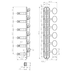 6 Mécaniques lock string style vintage à bouton blanc. 6 en lignes. Look soigné !