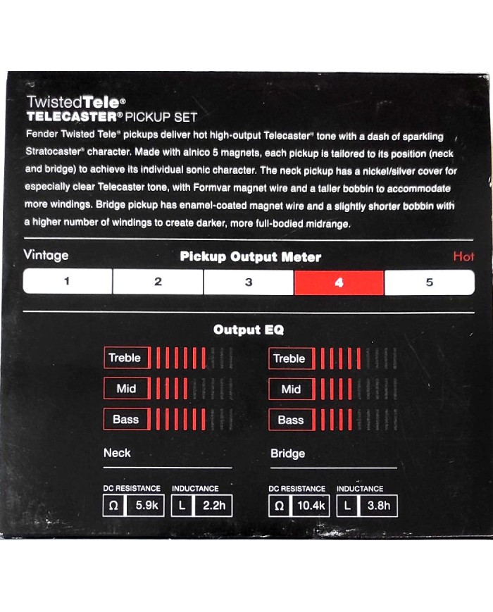 Les micros Fender Twisted Tele offrent un son de guitare Telecaster à haut rendement chaud avec une touche de caractère de guitare Stratocaster® étincelant. Chaque micro est adapté à sa position (manche et chevalet) pour obtenir son caractère sonore individuel. La bobine plus haute du micro manche est conçue pour accueillir plus d'enroulements, combinée à une bobine de micro chevalet légèrement plus courte pour un médium sombre et corsé.