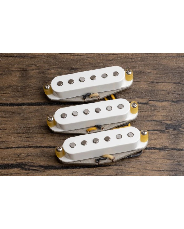 Grâce à leur aimantation Alnico II et à un stagger vintage modifié, ces micros assurent un équilibre parfait entre chaque corde et s’adaptent facilement à la plupart des configurations Strat. Les notes sont rondes, chaleureuses et claires, avec juste ce qu’il faut de brillance pour traverser le mix sans jamais devenir criardes.
