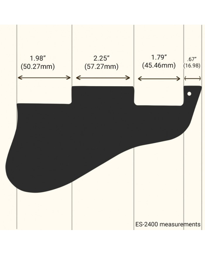 Ce pickguard de remplacement est conçu pour s'adapter au Gibson® ES-335® produit dans les années 1960. Ce pickguard ne convient pas aux premiers modèles ES-335® de production (1958-1960), aux modèles de réédition ou aux modèles produits par Epiphone®. Bien que de nombreux fabricants puissent fabriquer un modèle d'instrument similaire, cela ne signifie pas que chaque pickguard de ce type est interchangeable. Si la conception de votre pickguard diffère (pays d'origine, date de fabrication, fabrication non Gibson®) de celle illustrée, vous devrez peut-être soumettre un traçage pour une commande personnalisée.