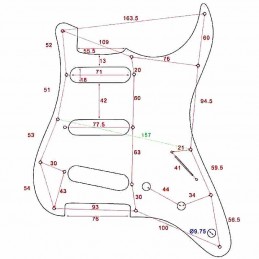 Pickguard Blanc/noir/blanc 3ply 11trous pour Stratocaster post 72, pots 1cm