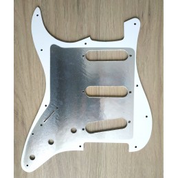 PICKGUARD pour Stratocaster® 3 ply 11 trous Banc/noir/blanc, brillant (shiny White - high gloss). Trous de potentiomètres diamètre 1cm. épaisseur 0.090" (2,3mm). Blindage au dos. Tres bonne qualité pour un petit prix !