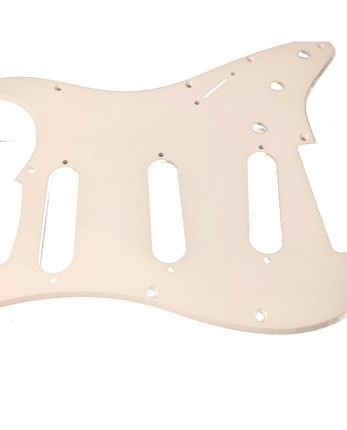 PICKGUARD pour Stratocaster® 1 ply 11 trous vintage white (parchment). Trous de potentiomètres diamètre 1cm. épaisseur 0.090" (2,3mm). Blindage au dos. Tres bonne qualité pour un petit prix !