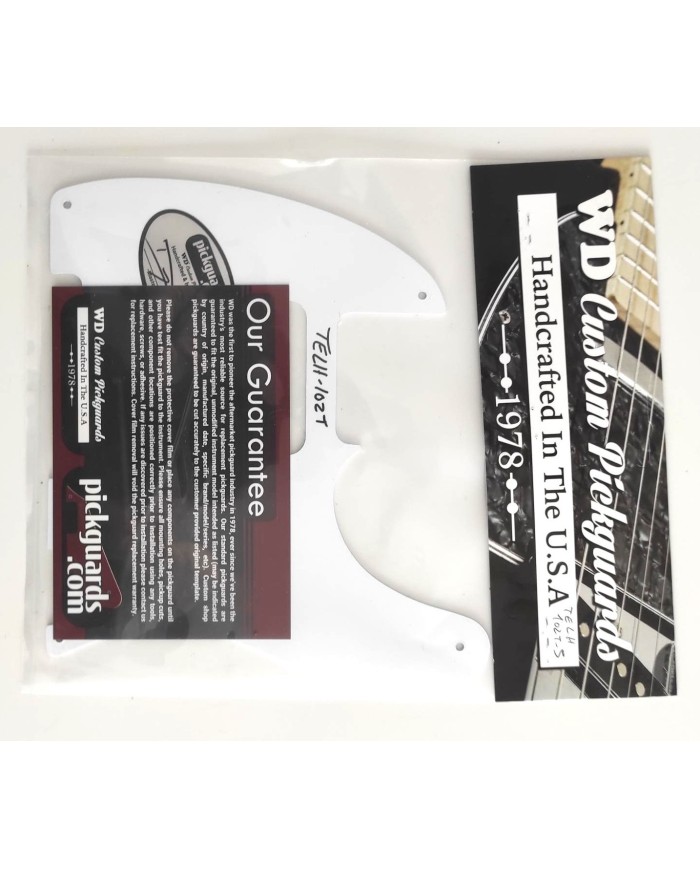 Pickguard Blanc GAUCHER fin 060" Telecaster Vintage USA 1ply 5 trous. Pour Telecaster 1954-présent USA.