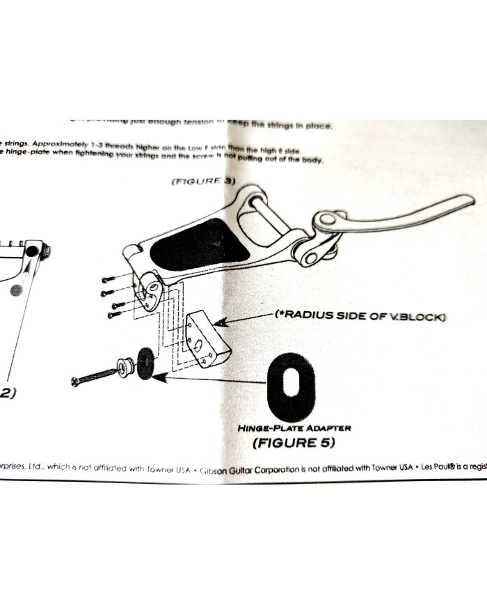 Towner V-Block Gold pour adaptateur TOWNER (Montage Sans Percage des Vibrato BIGSBY® B3 ou B7) Christian Towner invente le DTB (Down Tension Bar) parce qu’il refuse de faire un trou dans sa guitare ...Le DTB se fixe sur les inserts du cordier d’une guitare américaine. L’objectif est de plaquer les cordes sur le chevalet (comme la barre avant d’un B7) mais l’avantage du DTB c’est que l’action est réglable. En montant ou baissant les inserts on contrôle parfaitement le paramètre V.S.T (Variable String Tension) qui a une influence sur le sustain et la tonalité générale de la guitare. Une tension forte des cordes (barre plutôt baissée) réduira le sustain mais donnera un caractère dynamique et pénétrant au son, alors qu’une barre levée produira un son lâché, plus vibrant, voire discordant ... Towner insiste sur le point d’équilibre dans la tension à trouver pour chaque guitare.Le TOWNER V.BLOCK, par lui même, est conçu pour adapter les cordiers chevaleet Wraparounfd sur les corps de guitare de type Les Paul Jr.TOWNER V.BLOCK, est conçu pour les vibrato BIGSBY® B3 et BIGSBY® B7 UNIQUEMENT.Le TOWNER V.BLOCK est conçu pour reculer le BIGSBY® de 1/2 " (1,27 mm) de la base de support du cordier ou du chevalet.Il crée également la distance nécessaire pour que le BIGSBY® s'adapte aux corps des guitares plus courtes.Le système TOWNER V.BLOCK fonctionne mieux avec les corps de guitare LES PAUL ou de type court pour monter un cordier vibrato BIGSBY® B3.