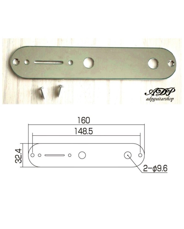 livrée avec 2 vis Telecaster Control Plate, Chrome with 2 screws; pots holes: 3/8".