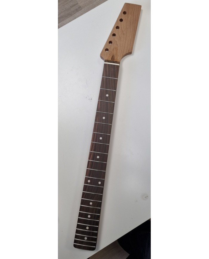 STOCK B, PLUSIEURS DEFAUTS - Manche 22 frettes style Stratocaster non verni (unfinished), en érable torréfié "Roasted", Paddle Neck