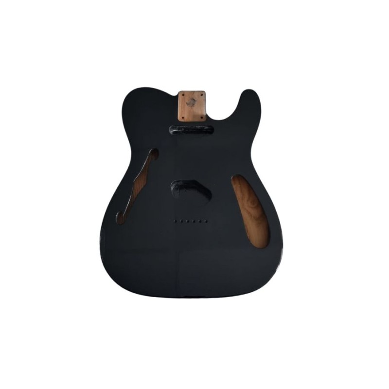 Corps Telecaster Thinline Noir vernis gloss, stock B : éclat devant bas gauche-