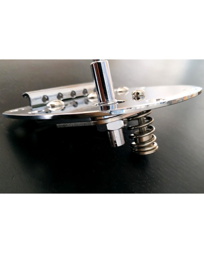 Ce cordier tremolo vibrato chrome est conçu pour les guitares type Fender Jazzmaster® et Jaguar®, dans le respect du design et du fonctionnement d’origine. Il constitue une solution idéale pour une restauration fidèle, un remplacement ou un projet custom.