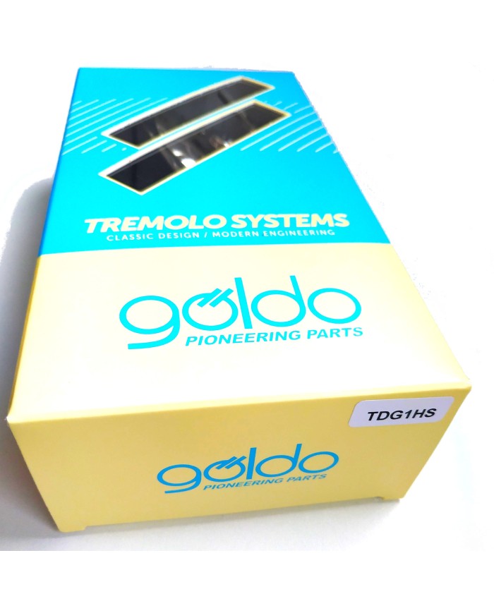 Système DG-Tremolo pour le montage sur des guitares à corps creux avec tous les avantages de la série göldo DG: action douce en mode "haut et bas" et un bras de trémolo rond réglable et élégant dans toutes les dimensions avec un point zéro réglable sécurisé.