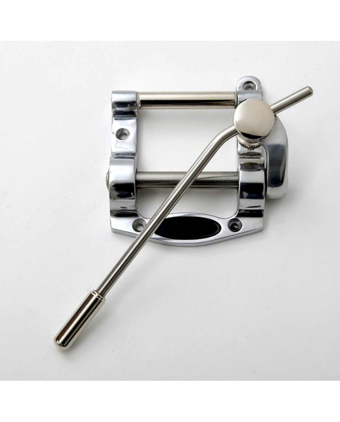 Le vibrato Göldo G5 est conçu pour un montage de cordes aisé et un jeu plus confortable Les cordes sont glissées dans un logement et ne sont plus enfilées sur des tiges ce qui économise votre temps et vos nerfs. La barre d'abaissement des cordes comporte 6 gorges de guidage de la corde Le Tremolo G5 est fourni avec manette ronde réglable