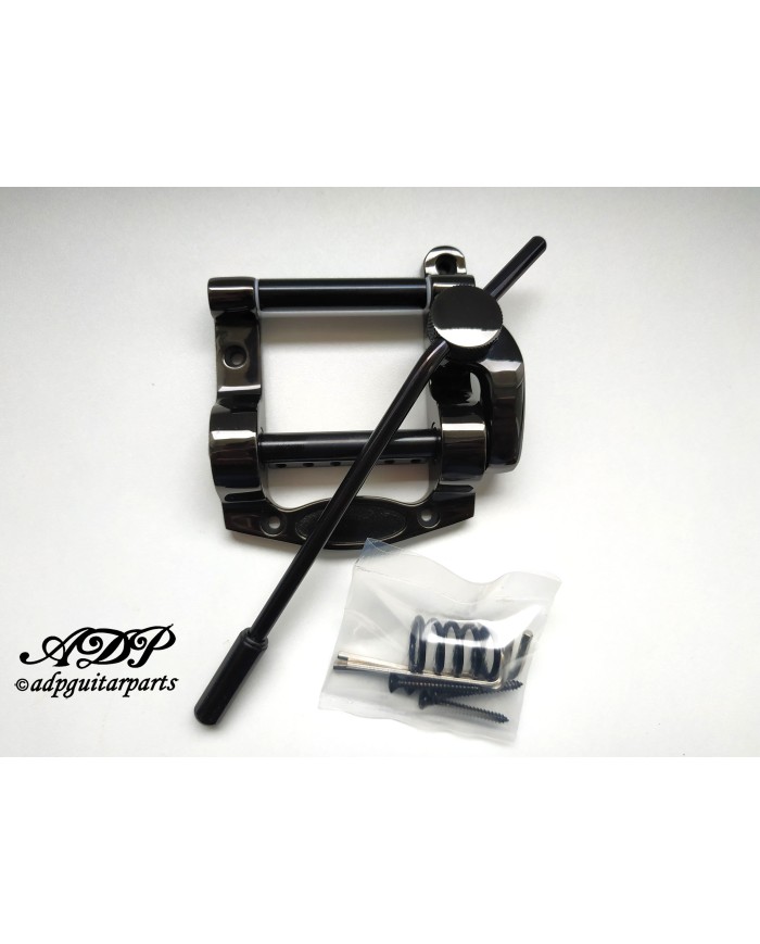 Göldo G5 Tremolo Black Inspiré par les TDRS/TDBS de Duesenberg, identique en termes de fonctionnalité et de qualité des matériaux. Un cadre en aluminium assure la meilleure transmission des vibrations, des roulements d'axe de haute qualité préservent la sensation de trémolo doux et offrent une stabilité optimale. Le levier rond rotatif à 360 ° est réglable en longueur, en réponse, en position et en mouvement.