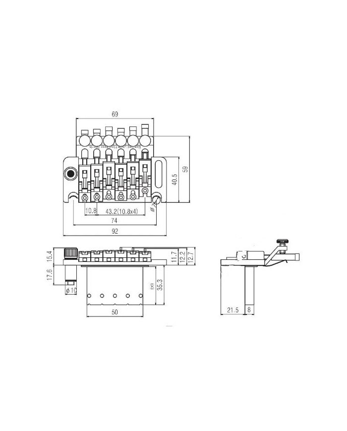 Vibrato FLoyd Rose Double locking system Noir R1 (42mm), bloc 36 mm, 92mm de Largeur