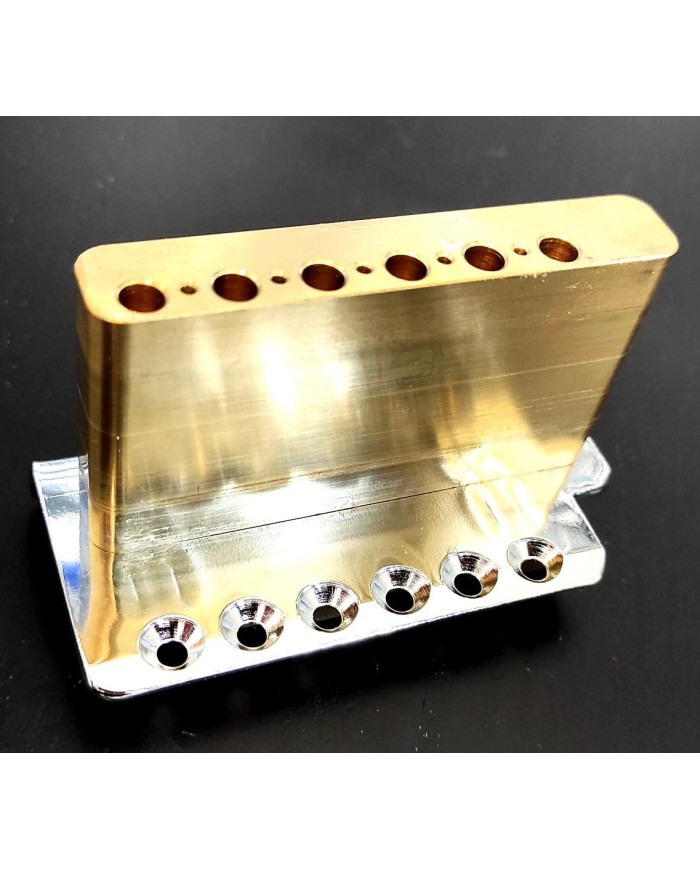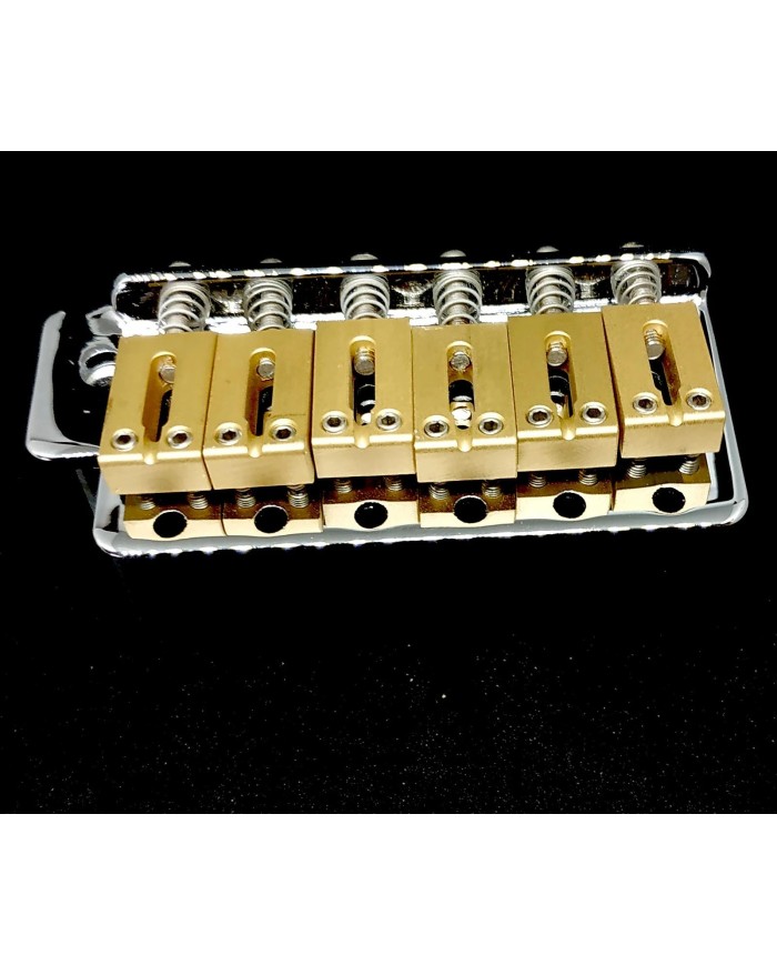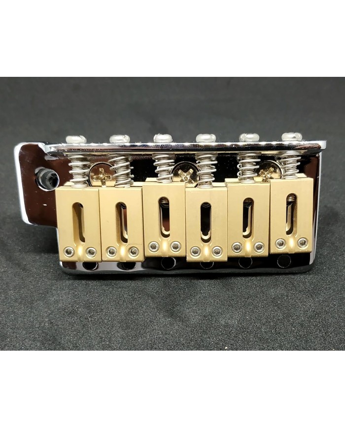 Le block en laiton massif a les même propriétés, et il assure la stabilité et le poids du tremolo 412 g sans les bras. Ce qui permet un retour du tremolo facilité.