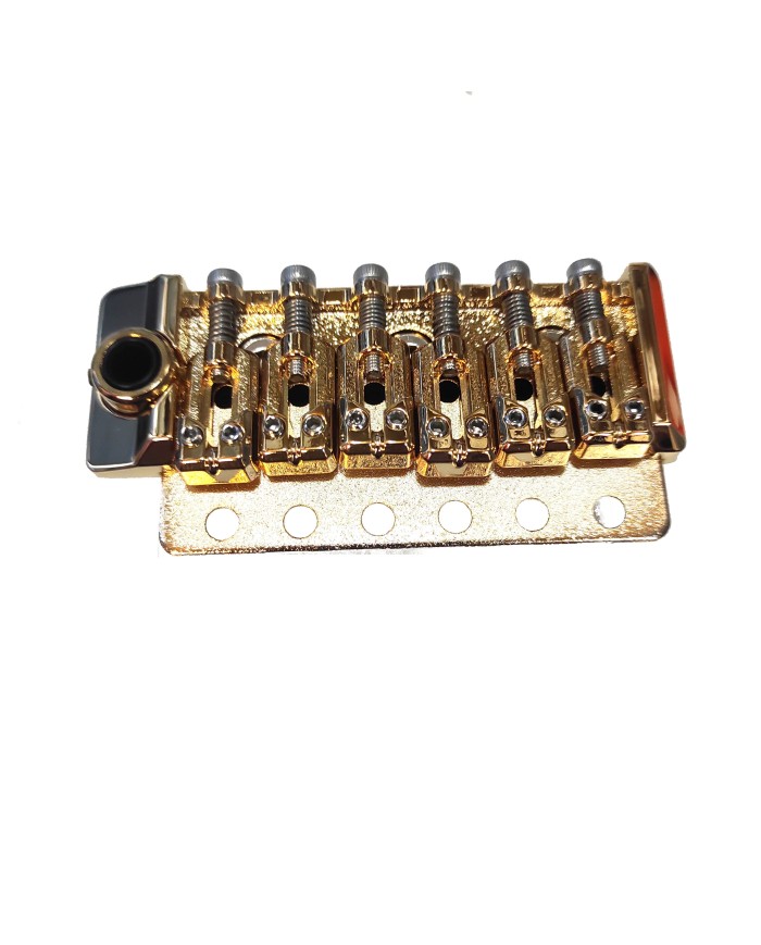 Ce tremolo style strat vous offrira une bonne stabilité (242g) et un bon sustain. Ces pontet en zinc 10.8mm ont une forme innovante. Il s'agit d'un compromis entre le pontet vintage et le pontet moderne, le sillon tres arrondi et profond permet de bien tenir la corde et de faciliter le glissement sans frottement lors de l'utilisation du tremolo.