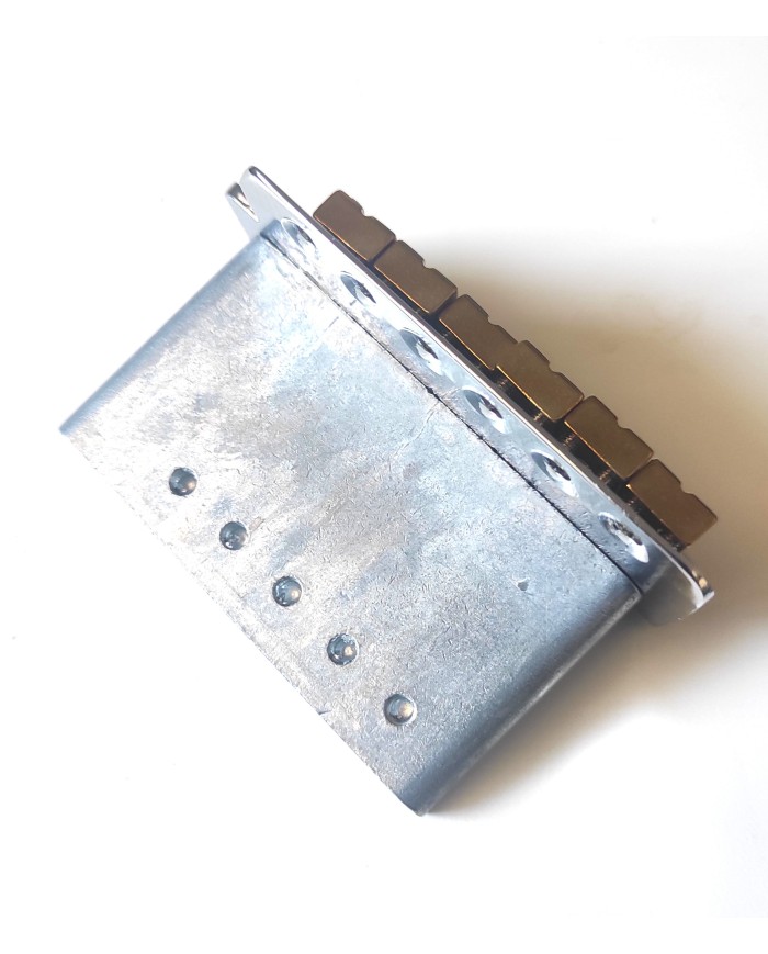 Le bloc de vibrato en zinc a tendance à produire un son plus neutre, que certains décrivent comme moins vibrant par rapport au laiton et à l'acier. Ils ne mettent pas l'accent sur une gamme de fréquences particulière aussi fortement. Le Zinc est léger et peut donner à la guitare une impression de légèreté globale. (ce vibrato pèse 243 g)