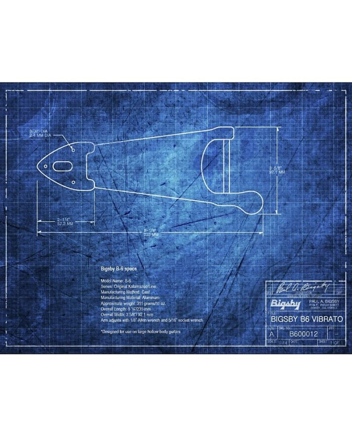 Le Bigsby B6 est un vibrato légendaire, pensée pour les guitares hollow body. Connu sur les très célèbre Gibson ES-335 et la Gretsch 6120. Il permet des effets de vibrato doux et expressifs, tout en conservant une excellente qualité d'accordage.
