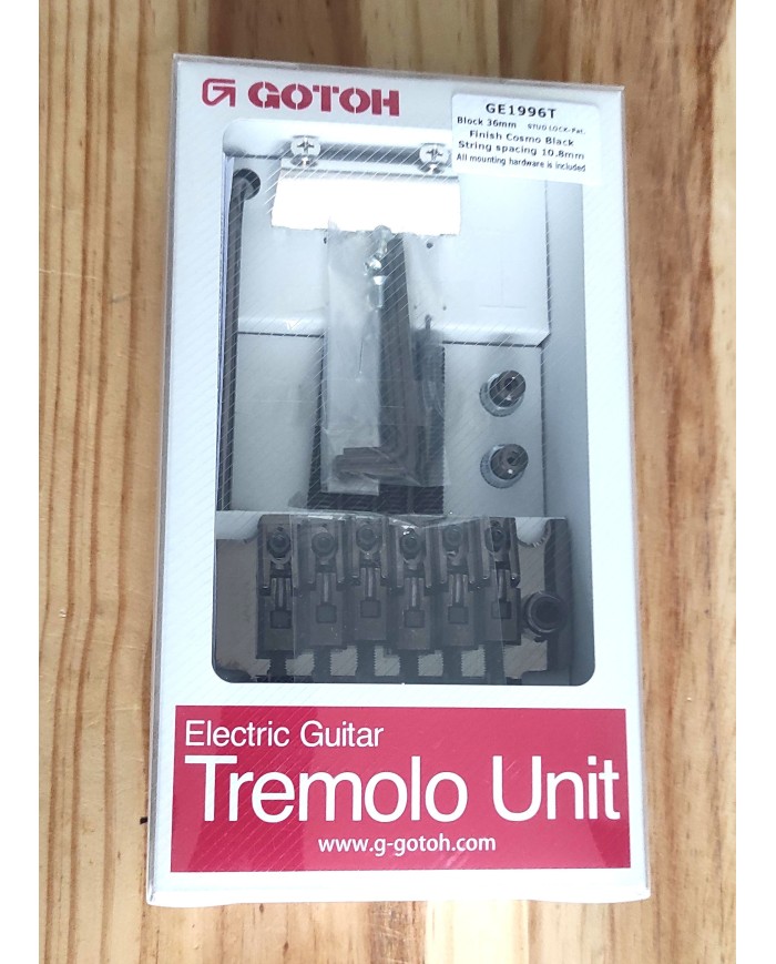 Licencié Gotoh 6 Pontets , bloc 42mm Cordier TREMOLO FLOYD ROSE, cordes traversant le Bloc Acier; 6 pontets blocables. Fourni avec les 2 vis de fixation, 2 vis et accrochage ressorts, bras Tremolo "simple push", clef Allen.